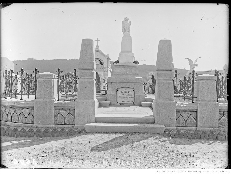 Léon Gambetta dort éternellement dans son cercueil renouvelé. Il est couché au niveau des fleurs et des gazons tendres, sur l'esplanade la plus ensoleillée, devant le panorama le plus splendide de ce pays" (Pierre-Barthélémy Gheusi, parent et biographe de Gambetta, dans, Gambetta par Gambetta, Lettres intimes et souvenirs de famille, Paris, Société d'Editions Littéraires et Artistiques, 1909, pp 404-405).