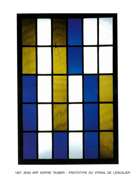 Prototype du vitrail de l'escalier menant au 1er étage, par Sophie Taeuber-Arp et Jean Arp (maquette attribuée à Jean Arp).